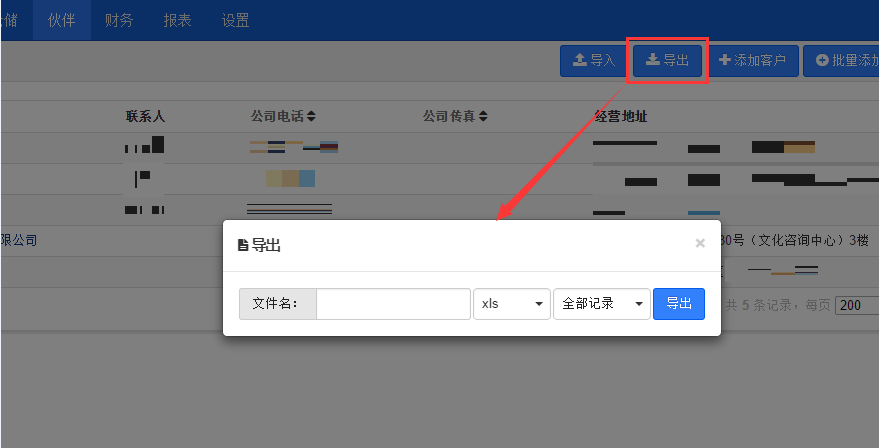 在公司浏览页面点击导出,输入文件名后即可将公司信息导出为电子表格。